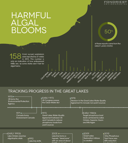 Harmful algal blooms seem to be on the rise, with 158 warnings reported by 21 states in 2013. An alarming 50% of those came from Great Lakes states.
